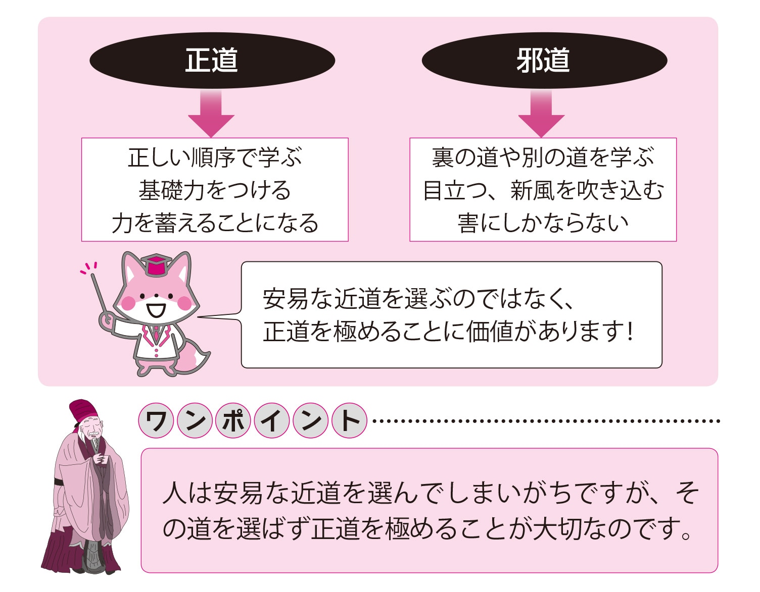 今の時代はとくに、人と同じことをしているだけでは、社会の成功者となることがむずかしい時代です。だからこそ、安易な近道を選ぶのではなく、正道を極めることに価値があります。