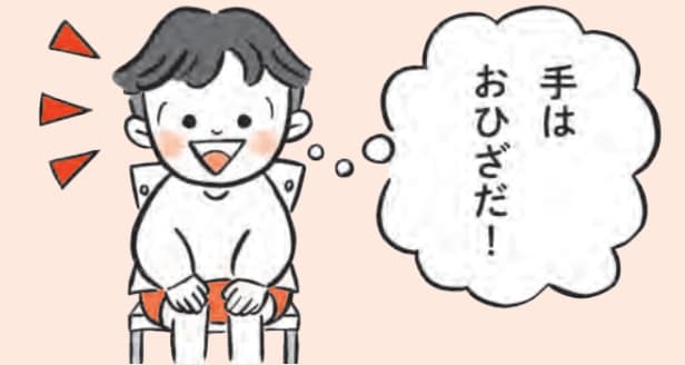 言動を抑制する力を育むためには、日頃から「してほしいこと」を言葉で伝えるように意識し、できたら思い切り褒めましょう。いずれは子ども自身が頭の中で「手はおひざ」と意識し、振る舞いをコントロールできるようになっていきます。
