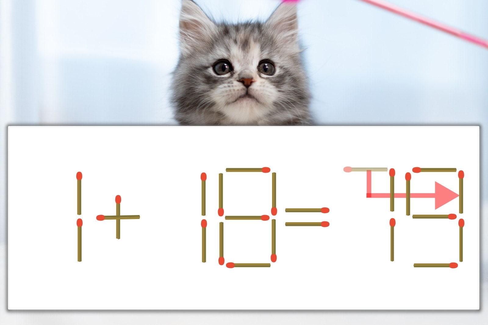 【問題】マッチ棒を1本動かして式を正しくしてください。