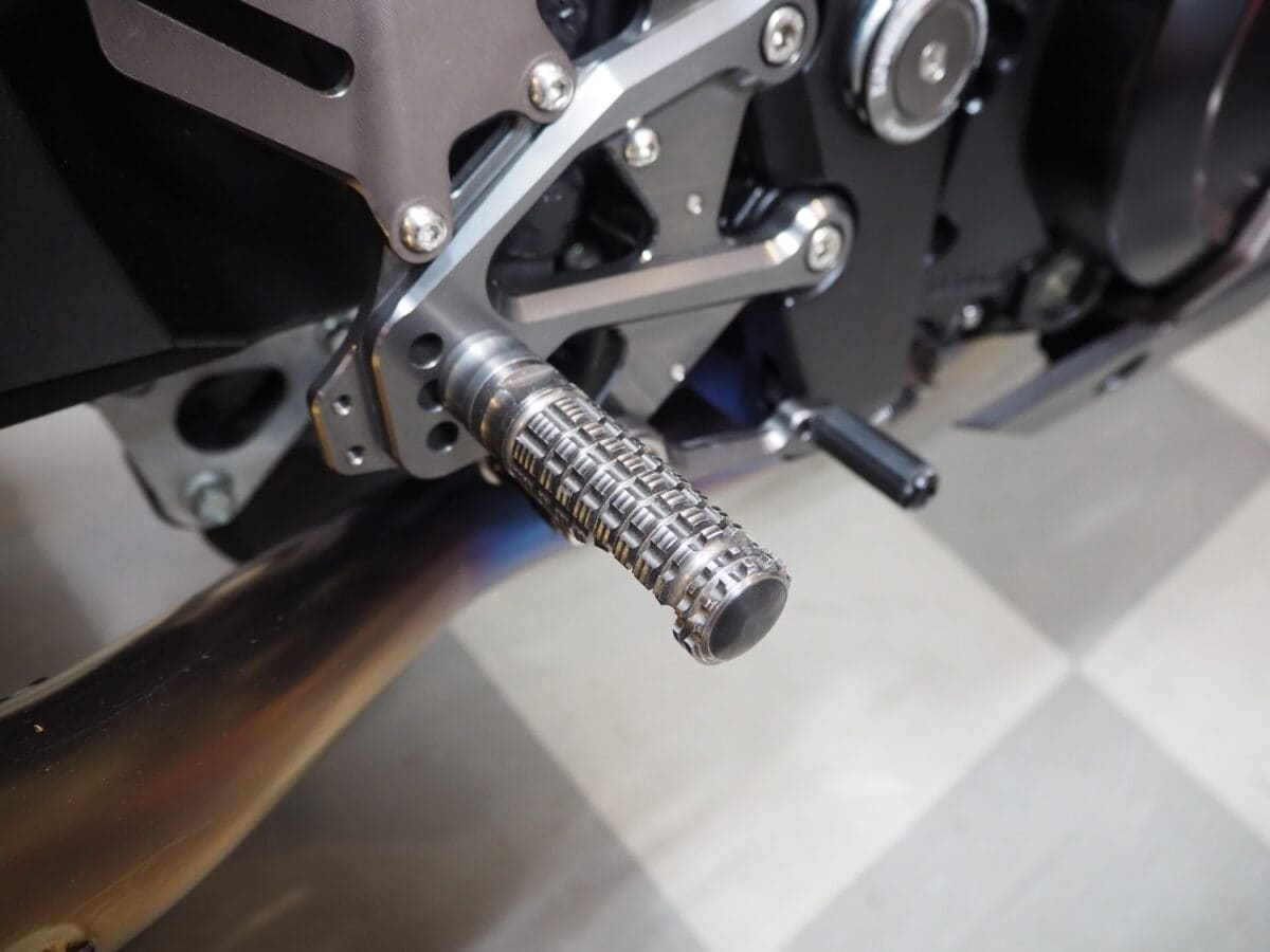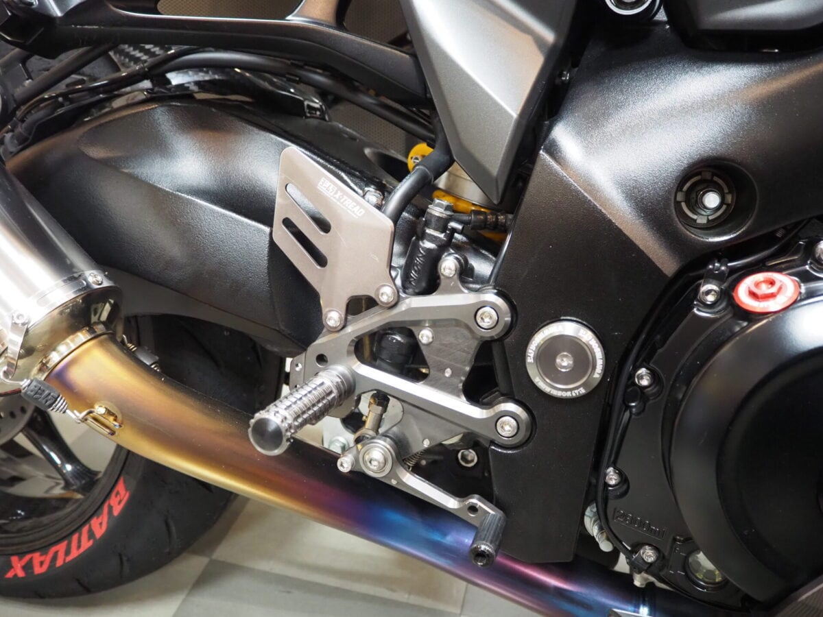 バックステップは足の操作位置変更はもちろんですが、滑り難くなることで、踏ん張りが効いたり、さらには車体との一体感が増す結構重要なカスタムだったりします。あとカッコ良さももちろん大事。
