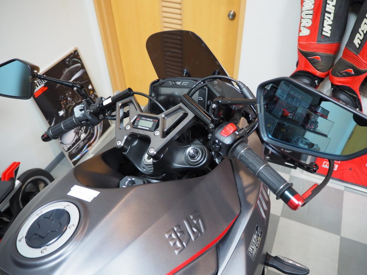 そのままだとカウルやタンクとの兼ね合いが上手くいかないので、専用の別売タンクカバー、アッパーカウルに変更が必要です。