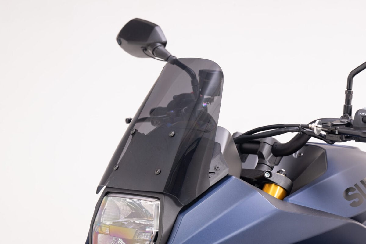 これね、プロトのデモ車にも装着したのでよく分かってるつもりですが、コダワリがハンパないです。ノーマルもショートバイザー付いてるんですが、それと換装……ではなくて、本来の位置にステーを装着して、GSX1100Sカタナを彷彿とさせる形状のスクリーンを新たに付けます。