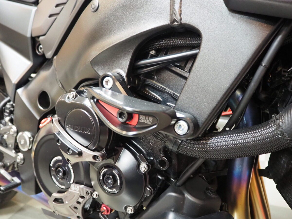 そしてエンジンケースガードKIT「PRO SHIELD」。これもKATANA全年式対応です。アルミの削り出しカバーがエンジンを保護します。樹脂スライダーのみのリペアも購入可能。運次第ですがコスパ良く補修できるかも?