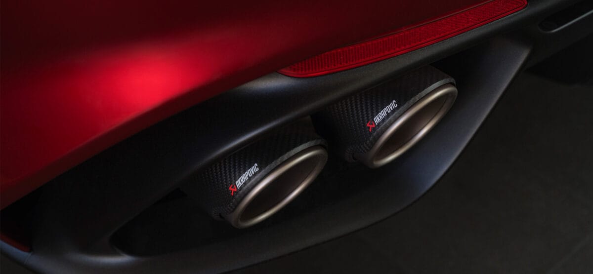 「GIULIA Quadrifoglio Collezione」のエキゾースト*には、世界のモータースポーツ分野において圧倒的な信頼を得ているAkrapovic(アクラポビッチ)製のシステムを採用し、排気効率の最適化や軽量化を図りました。また、リアには純チタン製マフラーを装備し、エンド部にはカーボン製フィニッシャーを組み合わせました。視覚的なスポーティさに加えて、Akrapovicならではの高く乾いた排気音がドライバーの感性を刺激し、至極の運転体験をもたらします。