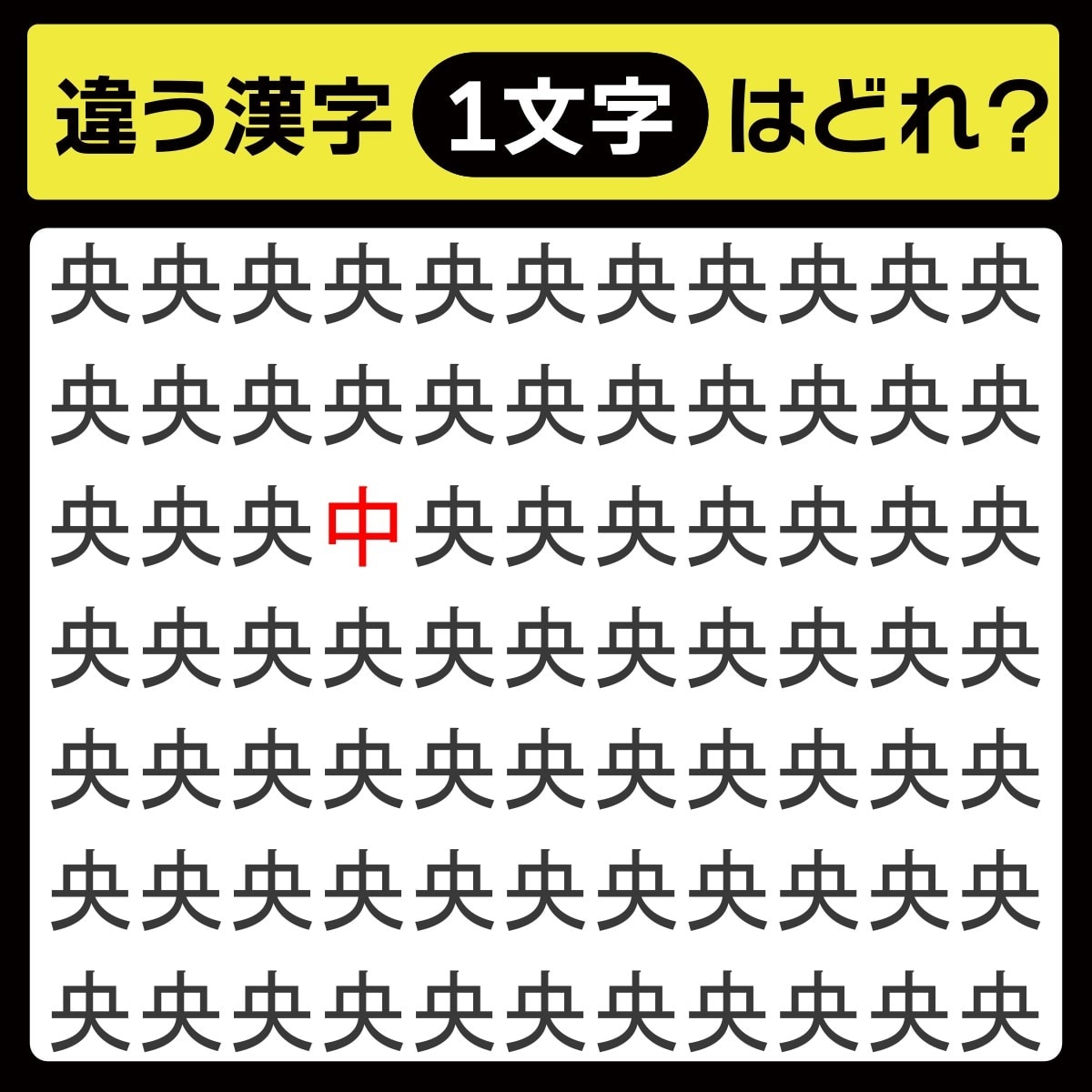 「央の中に隠れてるのは?」漢字間違い探しで脳トレしよう!【毎日脳トレ】【クイズ】