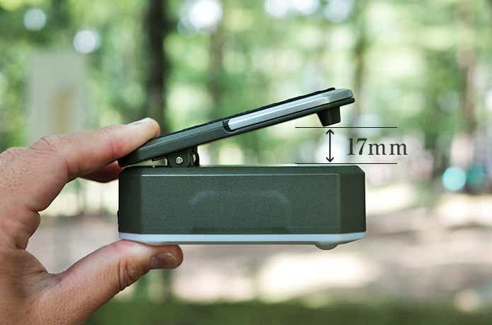クリップは約17mmほど開くので取り付けられる場所は多め。ただ、挟む力はそれなりです。