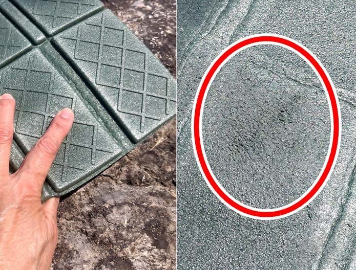 ダイソーのマットも登山やレジャーなど、想定するシーンでの使用には問題ない強度。