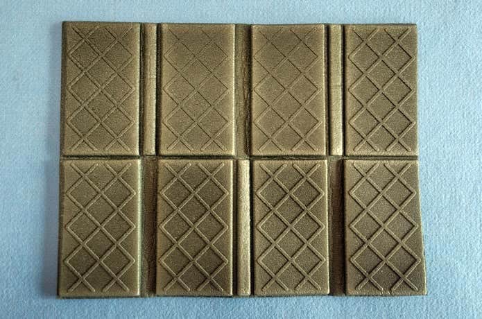よくある蛇腹タイプのマットの中央に折り目が入り、8つのブロックに分かれた仕様。なんの変哲もなさそうなのですが、実は、これが100円(税抜)とは思えない、ちょっと驚きのクオリティなのです。