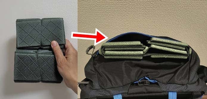 よくある蛇腹タイプのマットよりも様々な形に折り畳めるのが特徴です。