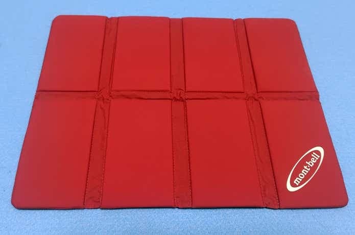 8つ折りで気になるのが折り目の強度。モンベルのほうは強度の高いリップストップ生地で表面が覆われているので不安はありませんが、ダイソーはフォーム素材がむき出しのため、使っているうちに千切れたり、表面が削れたりする懸念が……。