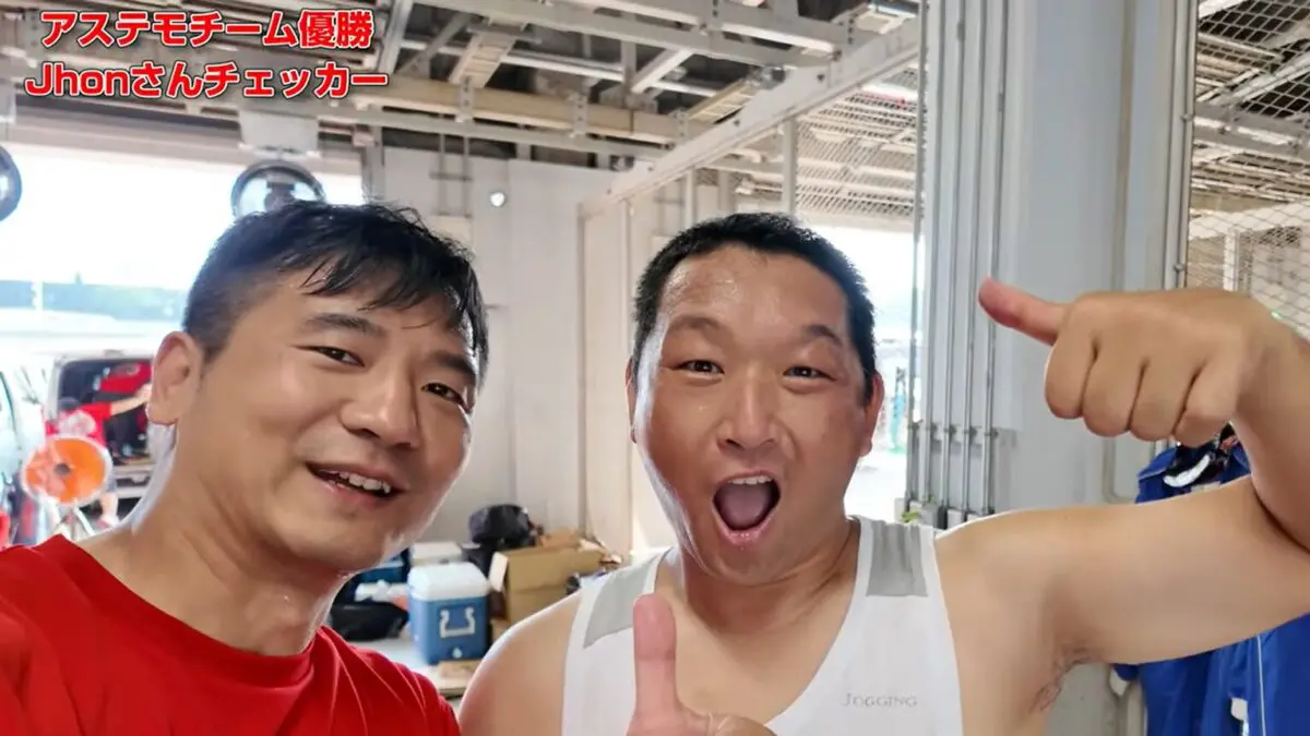 優秀なメカさんの懸命な修理により、ジョンさんが再スタートを切ります。しかし今度はジョンさんがヘアピンで転倒。 ダメージが少なかったのでジュンキさんが3回目の走行に挑みます。