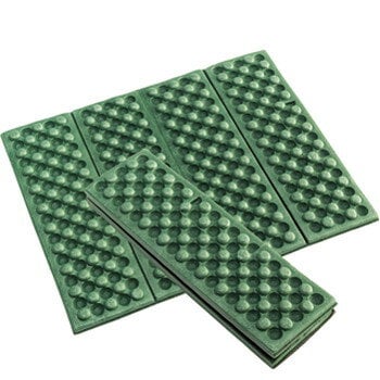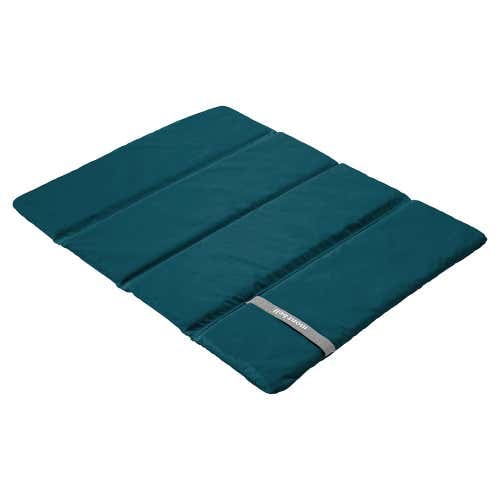 スリーピングマットと同じ材質の座布団。珍しい3パネルデザインで、たたむとわずか3.5cmと薄い状態で持ち運べます。5℃までの寒さに対応。