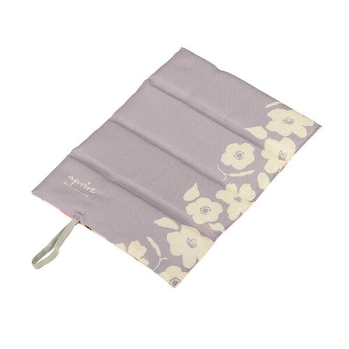 シックなグレーと明るい花柄のリバーシブルデザイン。縫い止めのバンドと収納袋が付属されています。