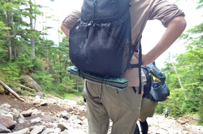 道幅が狭く外付けが危険な場合は、ザックの中にしまいましょう。その場合、クローズドセルタイプは背面パッドと兼ねるとすっきり収まりますよ。
