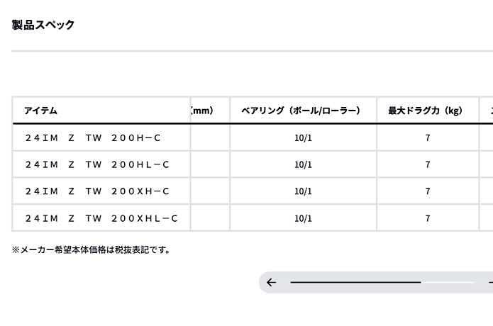 この表記はダイワ、シマノ、アブガルシアのいずれも共通。