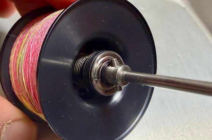 ベイトリールのカスタムでは、あえてベアリングを外し、カラーに替える人もいます。