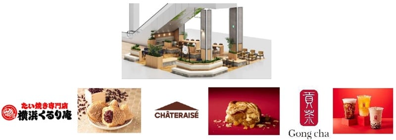 また、1階にはテイクアウトグルメを楽しめる「あじさいラウンジ」を新設。関西初出店のたい焼き専門店「横浜くるり庵」や、人気菓子店「シャトレーゼ」、台湾発祥の「ゴンチャ」などが新たに加わります。