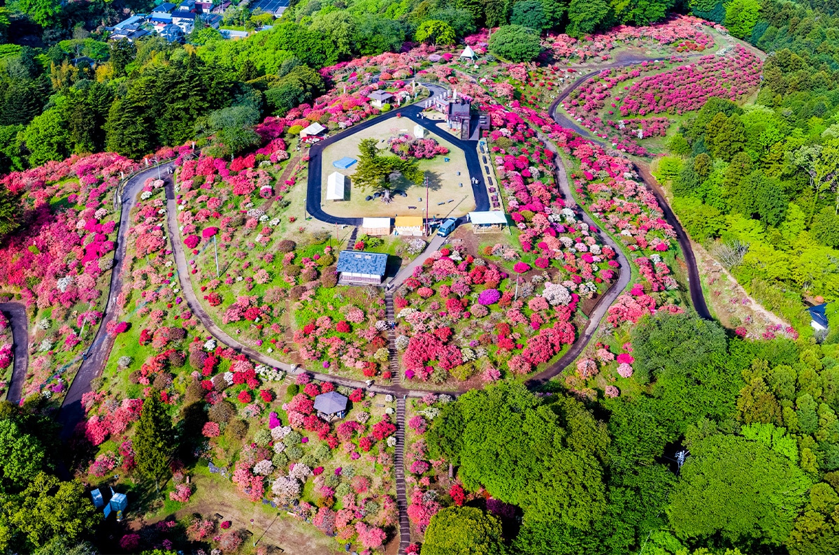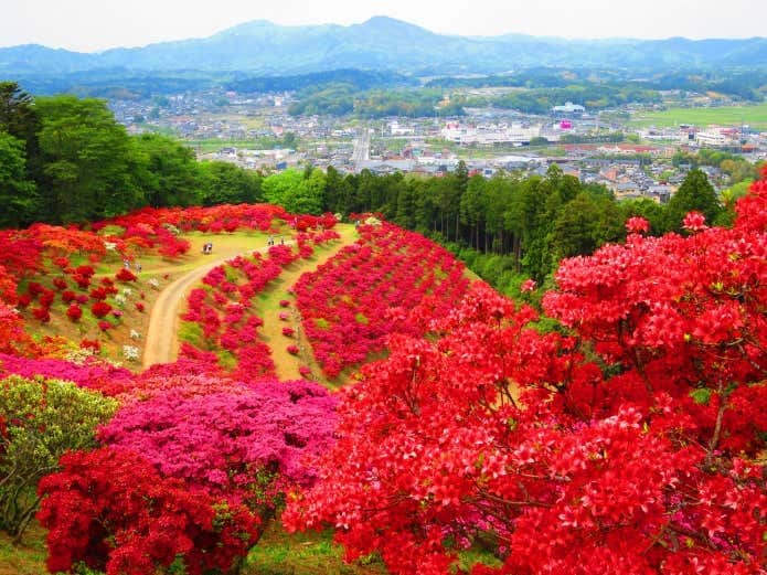 山一面が真っ赤に染まる。「笠間つつじまつり」の圧倒的スケール