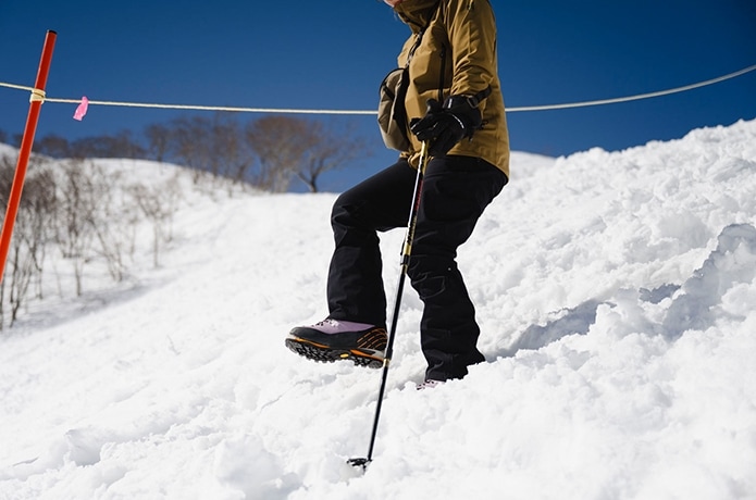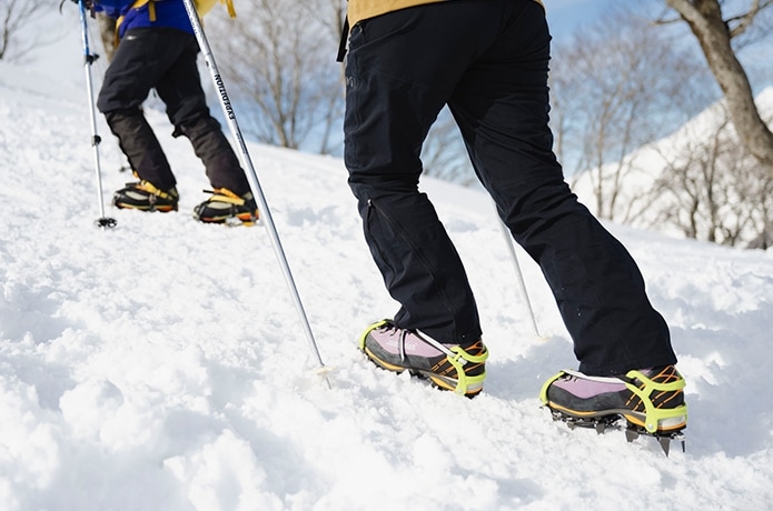 講習内容によっては雪上でストックを使用することもあるため、持っている場合は持参するとよいでしょう。なお、これから冬用登山靴やアイゼンを揃える場合は、靴とアイゼンの相性が重要。装着予定の靴に合わせて選ぶと失敗が少なくなります。