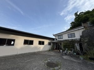 「温泉いわさき」は、そんな湯の児温泉の高台に建つ民宿です。緑になじむ素朴な建物には、田舎の親戚の家を訪ねたようなホッとできる安心感があり、肩ひじ張らずに過ごせます。客室の窓からは、温泉街の向こうに海が広がり、その眺めだけでもこの宿に来た価値を感じます。