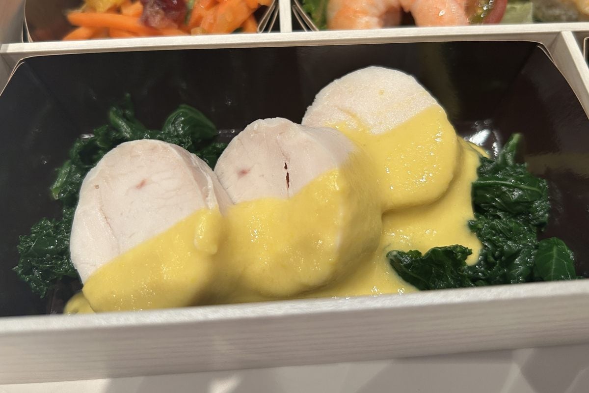 「青森県産チキンのロール トウモロコシのソース嶽きみ」は、トウモロコシの甘みも感じることのできる濃厚なソースが、青森県産のチキンを引き立てています。