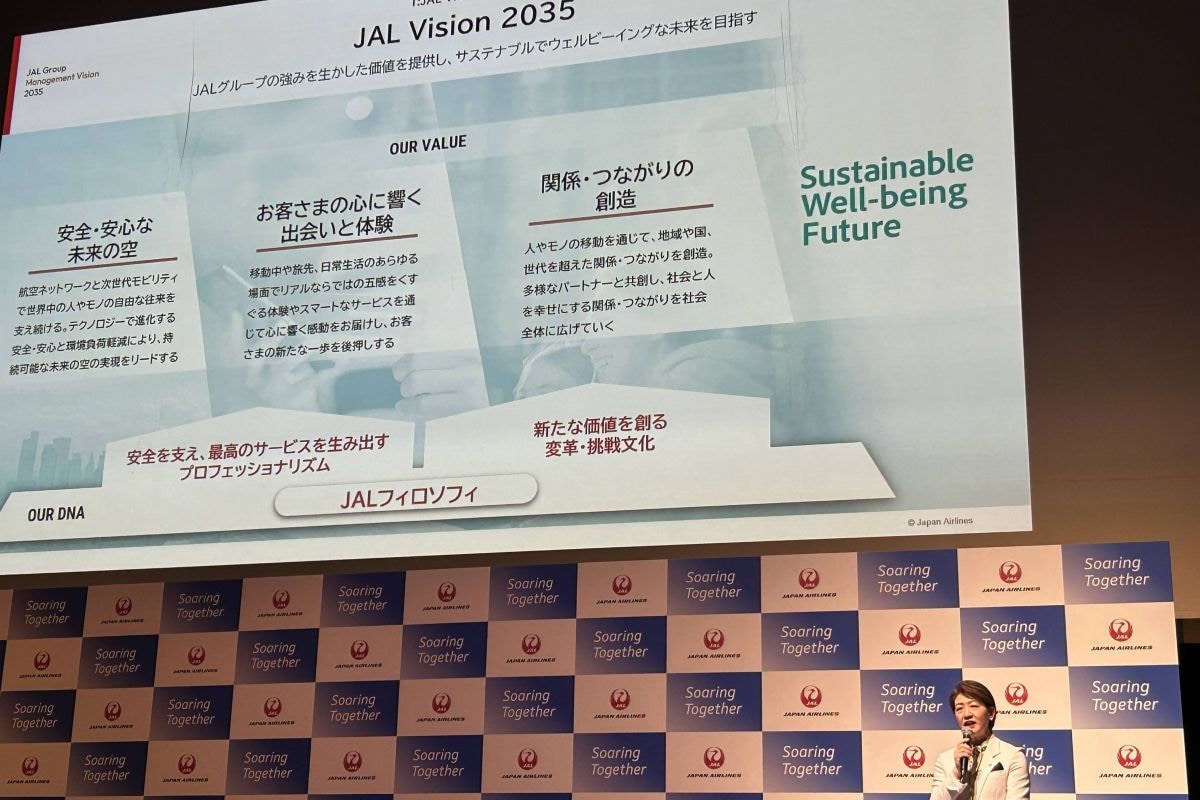 JALでは、今まで中心であった航空機の利用時の接点以外にも、多岐にわたる顧客との接点が生まれてきているそうです。JALは、新たな成長戦略である「JALグループ経営ビジョン2035」を、2026年3月に策定。環境変化に対応するための機材更新などを通じて安全・安心な未来の空や心に響く出会いと体験を顧客に提供し、地域や国を超えた多様なパートナーとの関係やつながりを創る取り組みを行うことで、今後に続いていくサスティナブルでウェルビーイングな未来を目指すとしています。