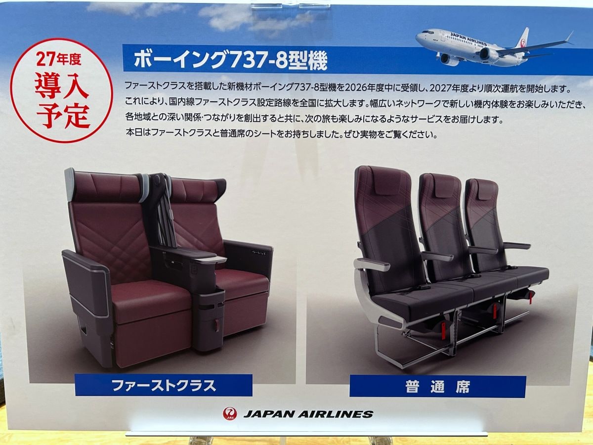 現在の国内線ファーストクラスは、羽田~札幌、大阪、広島、福岡、鹿島、沖縄などを結ぶ10の主要路線に限られていますが、短通路の小型機となるB737-8にファーストクラスを搭載することで、国内の様々な路線・地方路線でのファーストクラス設定が可能になります。