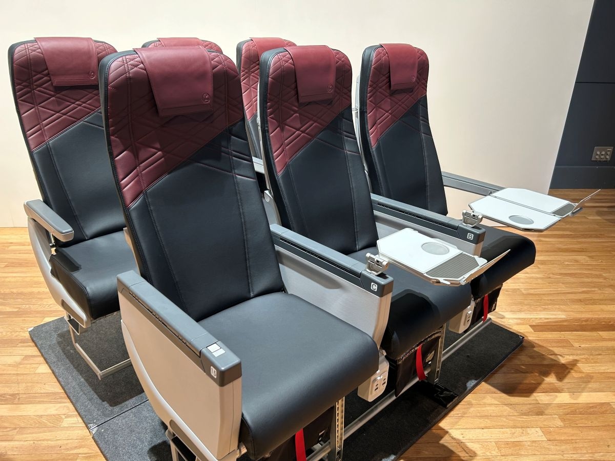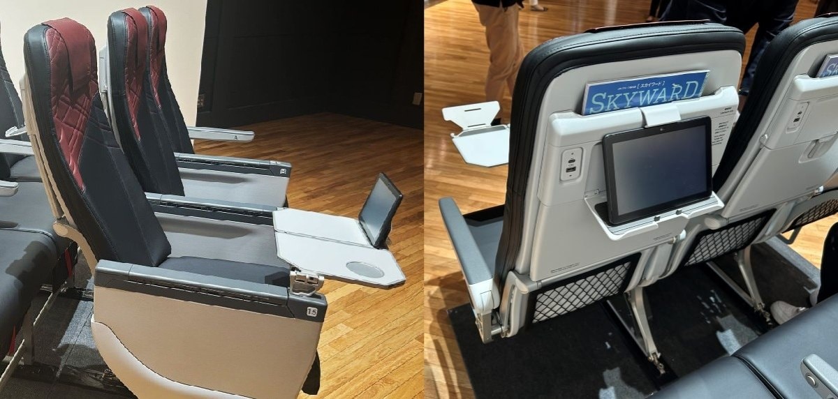 今回メディア公開会場では、ボーイング737-8型機普通席とファーストクラスの、2つのクラスのシートが展示されてまいした。
