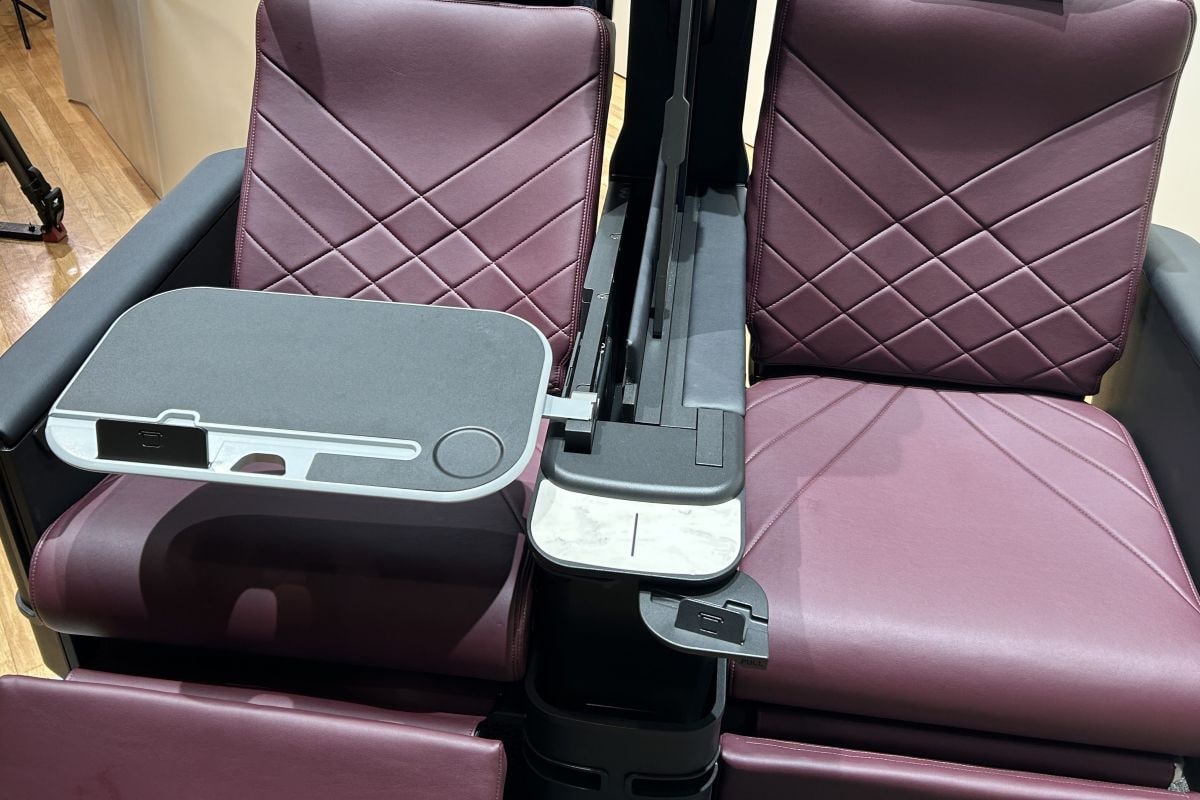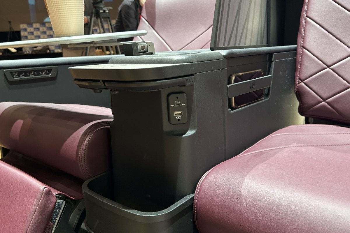 座席は、大手航空機シーメーカーのサフラン・シーツ US製。隣の席との間には間仕切りもあり、半プライベート感が保たれます。シートやフットレストのリクライニングは、電動ボタンで行うことができます。