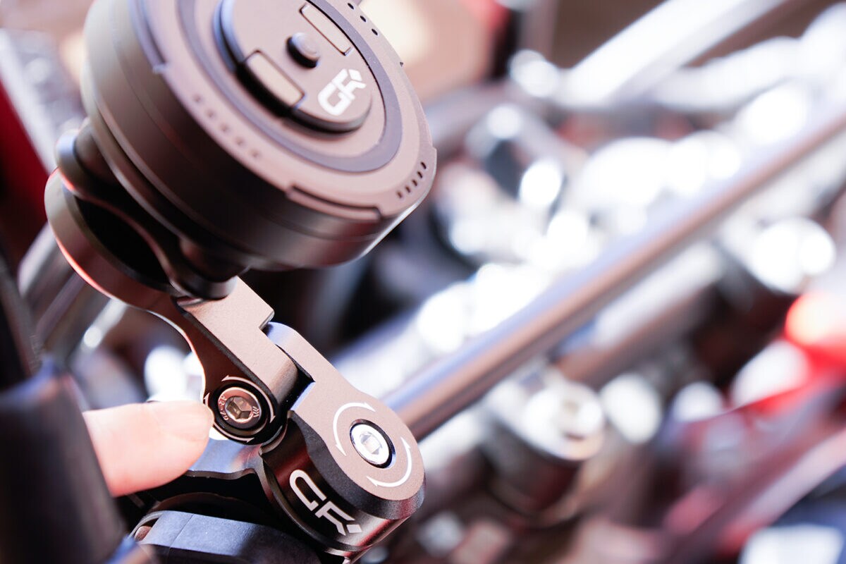 ナビやツーリングアプリなど、スマホは今やツーリングにおいてもライダーにとって欠かせない存在。しかし、グローブを外さないと扱いづらく着脱が面倒、脱着が簡単なものは走行時のホールド力が不安、欲しい目線に装着位置を決めにくい、画面の向きを変えるのにいちいち工具が必要などなど、いま使っているスマホマウントに大なり小なり不満を感じているライダーは少なくないハズ。