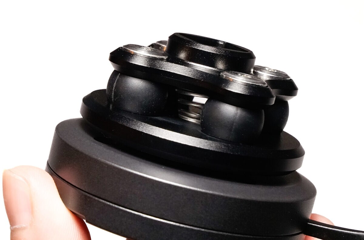 バイク特有の振動は、スマホに搭載されたカメラなど精密部品にダメージを与える可能性があるが、GR エクスプロアはその点にもしっかり配慮し、なんと振動吸収装置(4個のゴムダンパーと1個のコイルスプリング)が標準装備されている。
