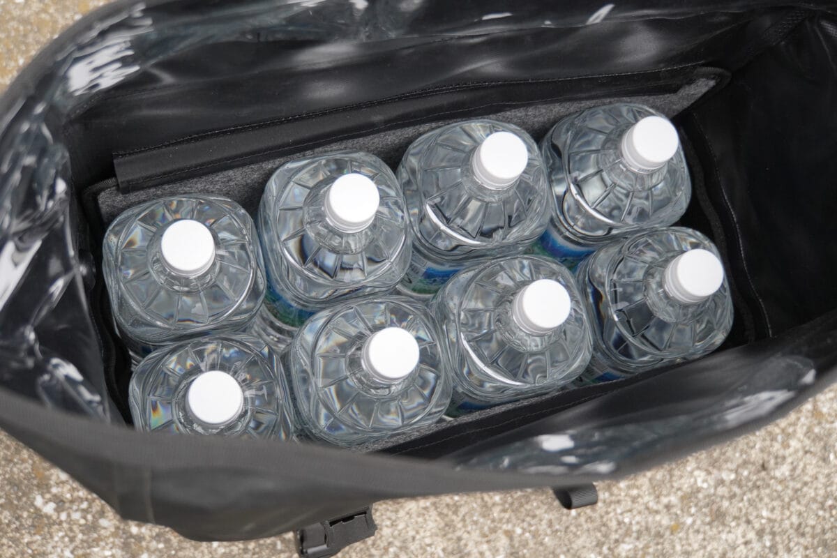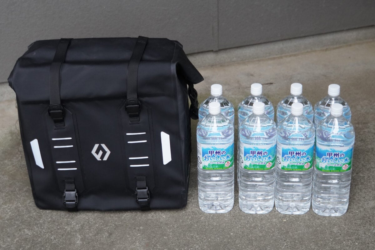 ただタンデムステップが隠れてしまうので2人乗りはできなくなってしまう。とはいえこのサイズ感は頼もしい。テストしてみると、2リットルのペットボトルが8本入って、その上にはさらに余裕があった。