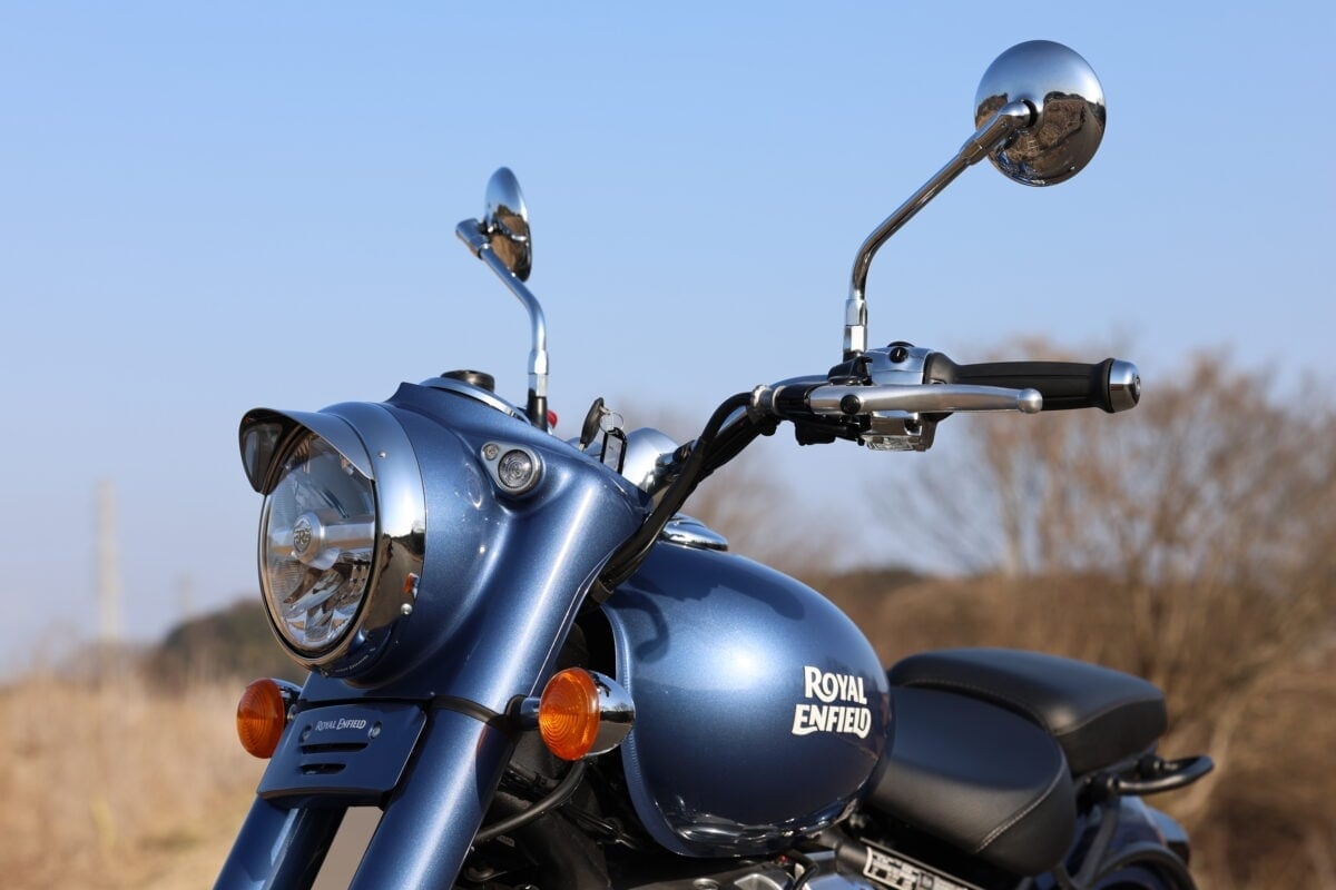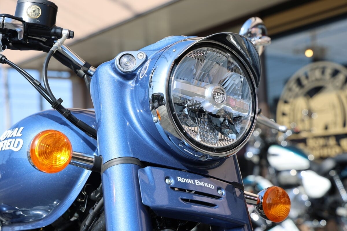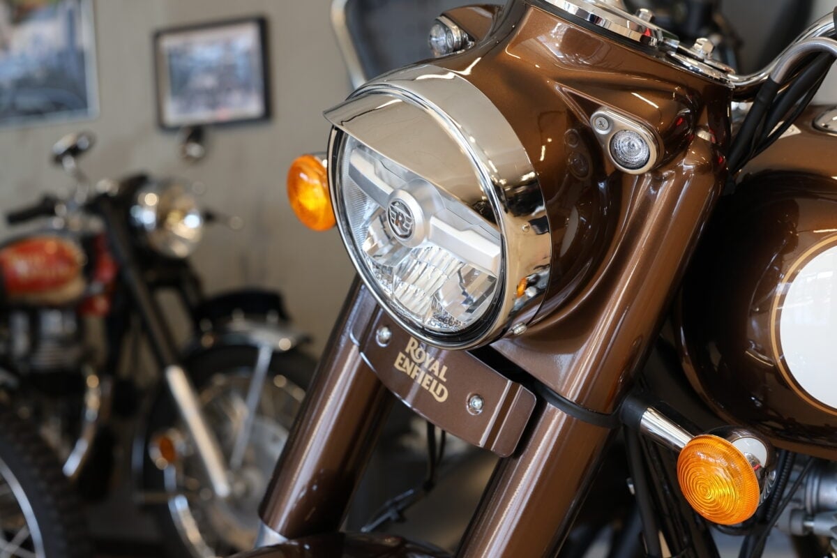 そんな特徴的な要素を挙げれば、フルカバータイプのフォークガードやヘッドライト脇のタイガーアイはひと目でロイヤルエンフィールドだとわかるアイコン。すごいのはこれらの要素が過去のモデルの復刻というわけではなく、125年以上をかけて育ててきた個性であるということ。クラシック650はそんなロイヤルエンフィールドらしさが色濃く現れており、他のメーカーが真似できない希少性となっている。