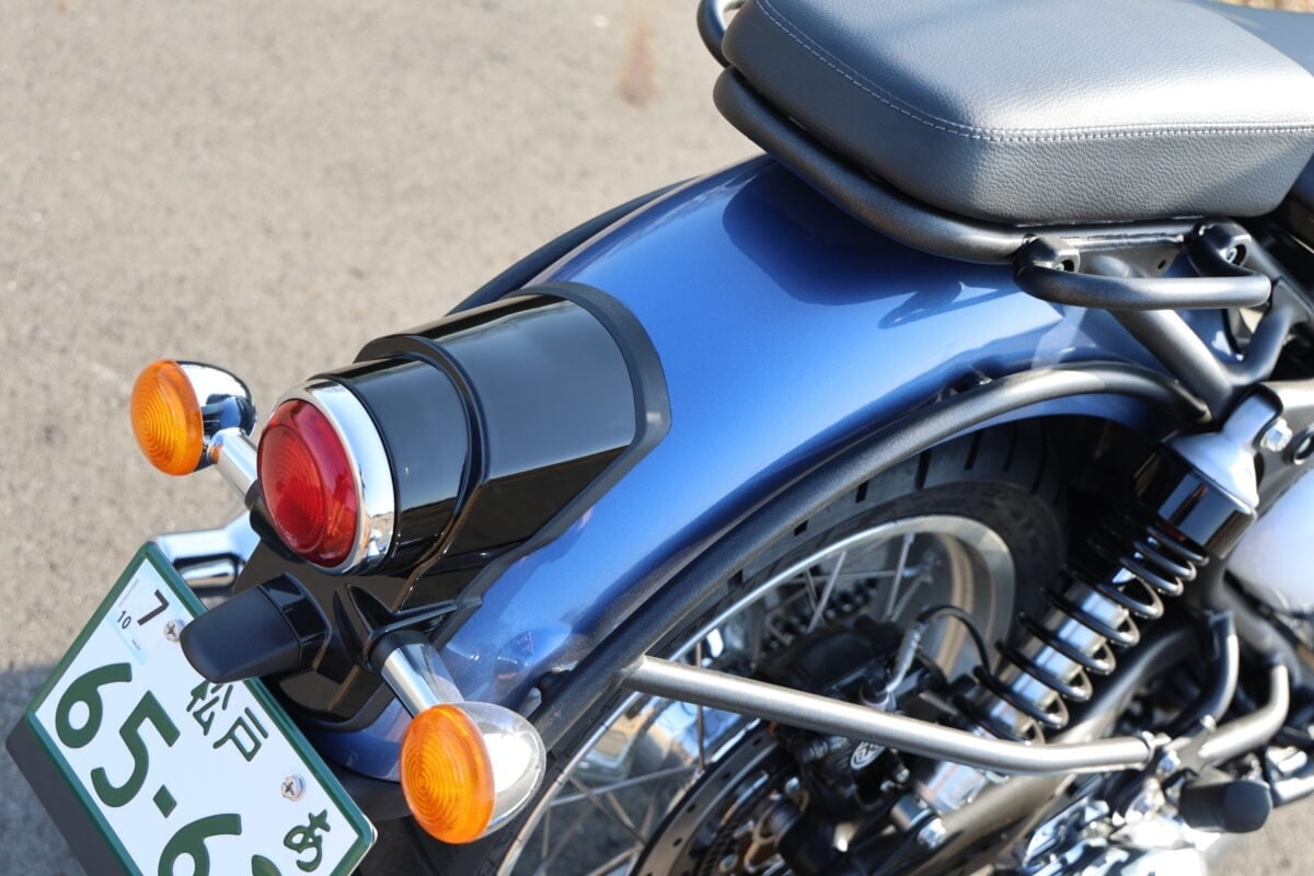 驚くのは、決して安い価格設定だから手を抜くなんてことはなく、しっかり細部まで車両を作り込んでいるところ。前後のフェンダーはスチール製ならではの絶妙な曲線を描いており、塗装の乗りにも鉄らしい奥深さを感じる。またフューエルタンクや鞍型シートなどは同系フレームの兄弟車でも全て形状を変えるというこだわりよう。