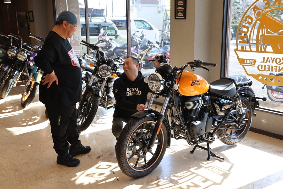 “50代、60代で多くのバイクを乗り継いできたお客様は、「こういう昔ながらの本物のクラシックが欲しかったんだよ」なんておっしゃられる一方で、免許を取り立てのお客様にはクラシック650のレトロなスタイリングがとても新鮮に映るようですね。クラシック650に限ったことではないですが、ロイヤルエンフィールドのバイクが気になる方は、一度実車を見にきていただけると、新たな発見があったり、より印象が深まること間違いなしです。”
