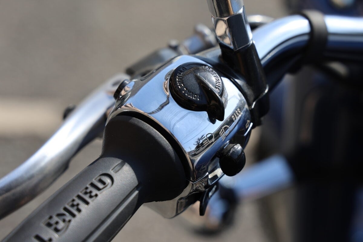 “バイクショップとしてクロニクルでは色々なメーカーの車両を扱っていたりしますが、ロイヤルエンフィールドはデザインやカラーリングといったところにとても拘っていると感じますね。例えばクラシック650で言えば、クロームメッキ仕上げのスイッチボックスに鈍い光を放つアルミ無垢のクランクケースといったところですが、細部の仕上げにものすごいこだわりを感じます。これらの細部へのこだわりは実車を前にして初めてわかるところですね”。