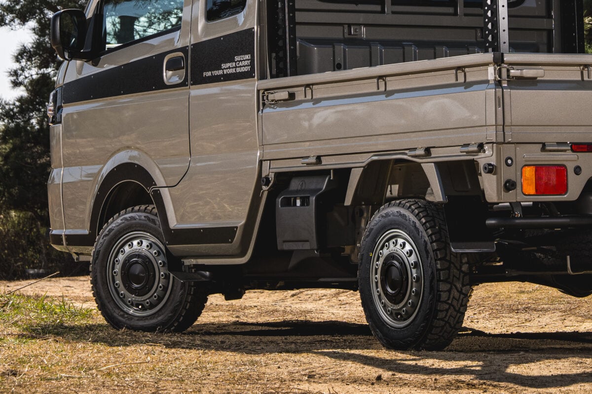 どちらもあえて艶を抑えたソリッドなトーンに仕上げることで、本格オフローダーはもちろん軽トラ・軽バンといったワークカー、さらにはアウトドアテイストの軽乗用車まで自然に馴染む普遍性を備えている。