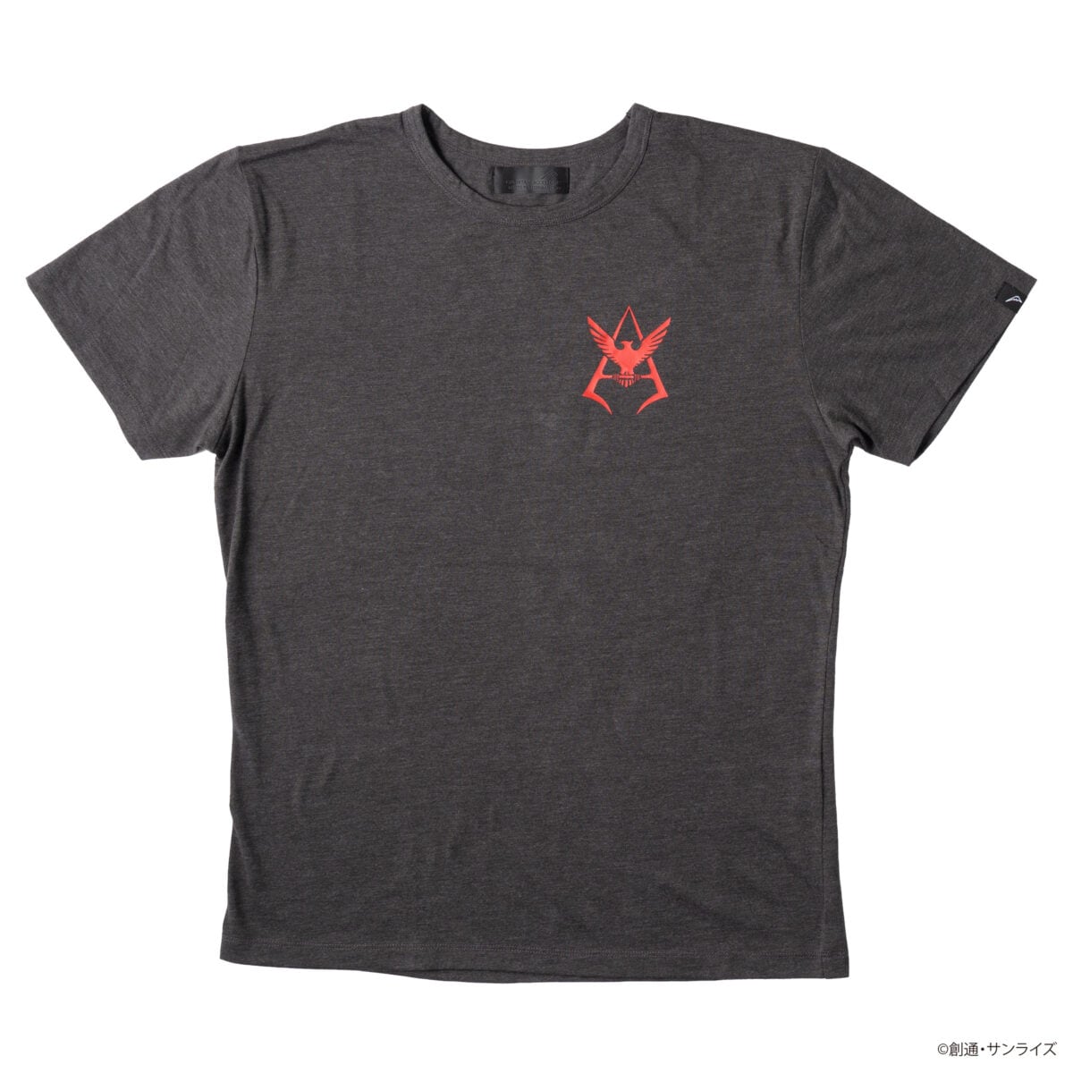 吸汗速乾の杢調Tシャツをベースに、ブラック×レッドの配色が映えるシャアマークデザインと、『機動戦士ガンダム閃光のハサウェイキルケーの魔女』をモチーフにしたネイビー×オレンジのマフティーマークデザイン。