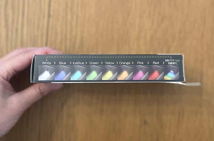 そして、Amazonのレビューなどを見ると、実はこれが目的という人も多いのが、8色+グラデーションのカラー点灯。