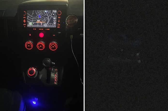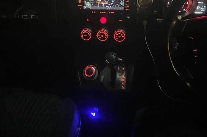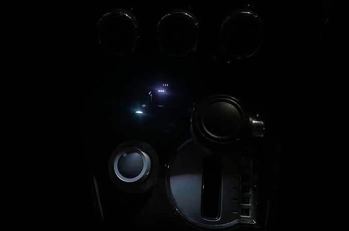 ダッシュボード周りの機器は、オートで夜モードに切り替わって光ってくれますが……、問題はその下のコンソール周り。