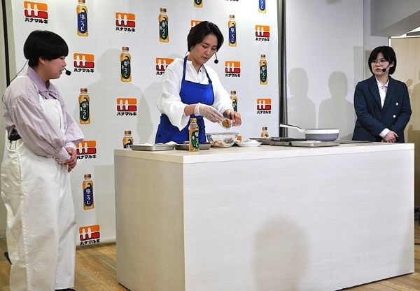 液体塩こうじは、粒状の塩こうじを絞って液体化したもの。ハナマルキが日本を含め世界5カ国で製造特許を取っているという。平田取締役は「液体塩こうじは非常にオリジナリティーが高い。粒状塩こうじも含めた当社の塩こうじ事業の売り上げは右肩上がりで伸びており、2025年に20億円を達成した。次は30~50億円が目標となるが、塩こうじのポテンシャルは高く、どこまで売り上げが伸びるか期待している」と述べ、国内売り上げの好調さを強調した。