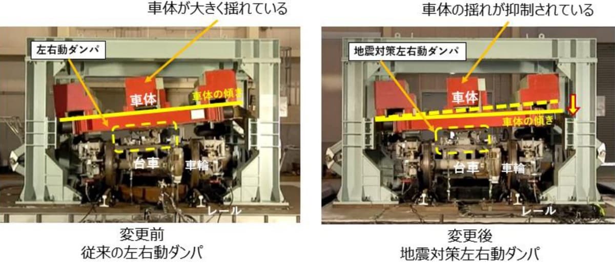 これまで新幹線には、乗り心地を向上させるための「左右動ダンパ」が搭載されていました。