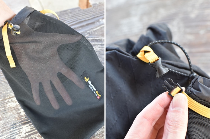 ② ザックに取り付ける「外付けメッシュポーチ」