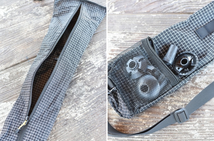 公共交通機関で下山する際、汚れたトレッキングポールの扱いに困ることってありますよね。そのまま持ち込むのは気が引ける……そんなときに活躍するのが、このトレッキングポール専用収納袋です。