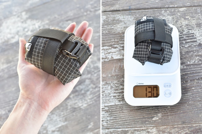 使わないときはくるりと丸めてコンパクトに。手のひらサイズになるため、ザックに入れておいても邪魔になりません。重さも130gと軽量なのも持ち運びに躊躇しなくなりそうです。