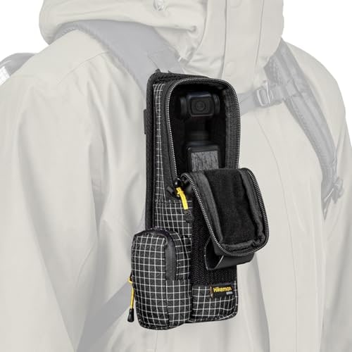 収納ケースはosmo pocket3を全面保護しつつ、登山中でも両手を空けて撮影可能。カラビナ付きでリュックにしっかり固定でき、必要なときはサッと出し入れ。軽量120gで斜め掛け・手提げ・リュック装着など持ち方も自由自在。ダイニーマ混紡生地と防水ファスナーで耐久性・防水性も高く、旅行やアウトドアでも安心して持ち運べます。