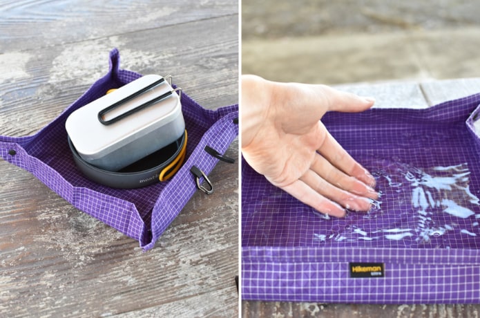 さらに角を折れば簡易トレーとしても使用可能。水もためられるので、ちょっとした洗い物にも使えるのは地味に嬉しいポイント。
