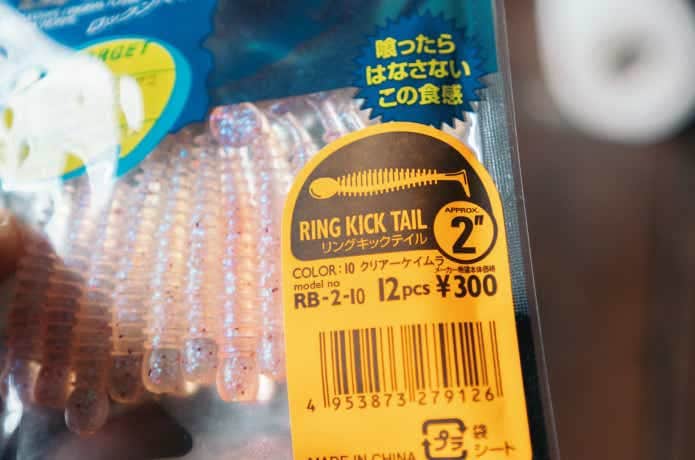 リングキックテイル(2in)は、12匹入りで300円(税抜き)というまさかの価格。昨今ここまで安価なワームはなかなかありません。