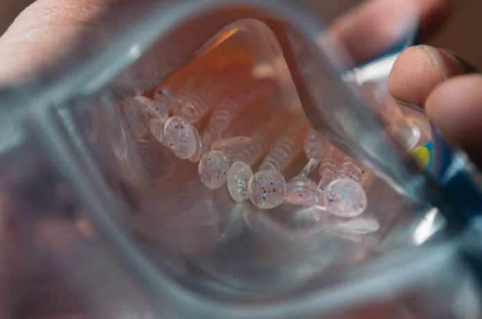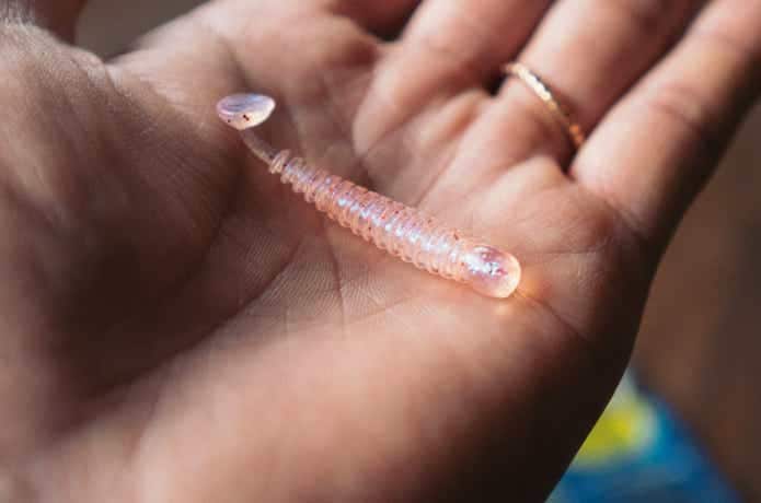 安価なワームながらも匂い付きです。とは言ってもガルプのような強烈な匂いではなく、ほのかに甲殻類系の匂いが香る程度です。