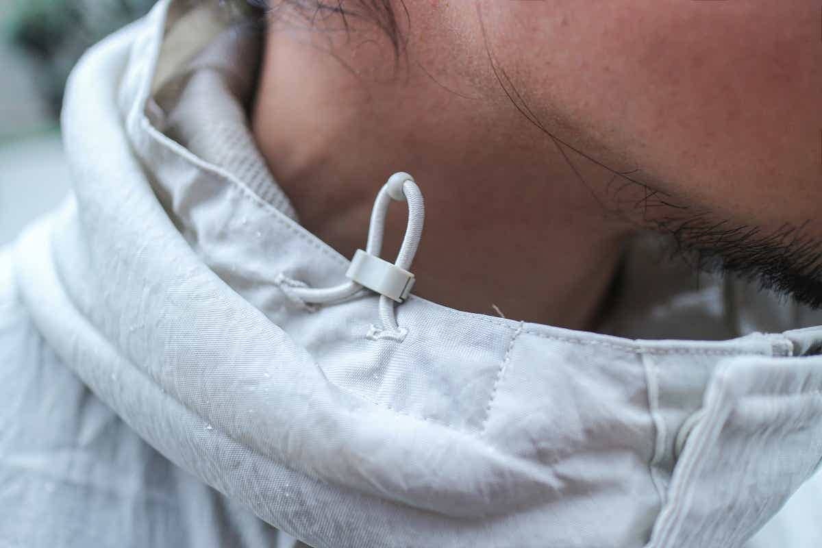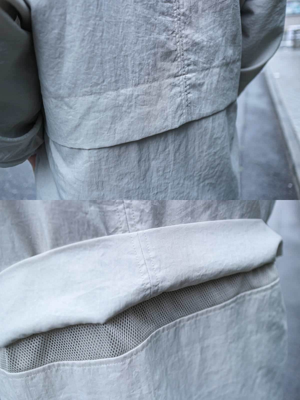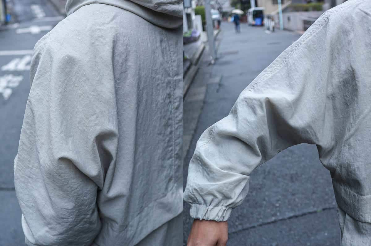 フードのドローコードや後身頃(背中部分)のベンチレーションなど、随所に散りばめられたアクティブなディテールも効いています。